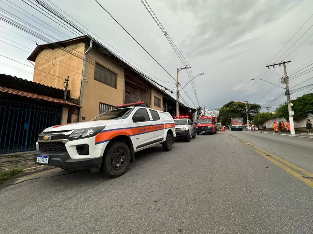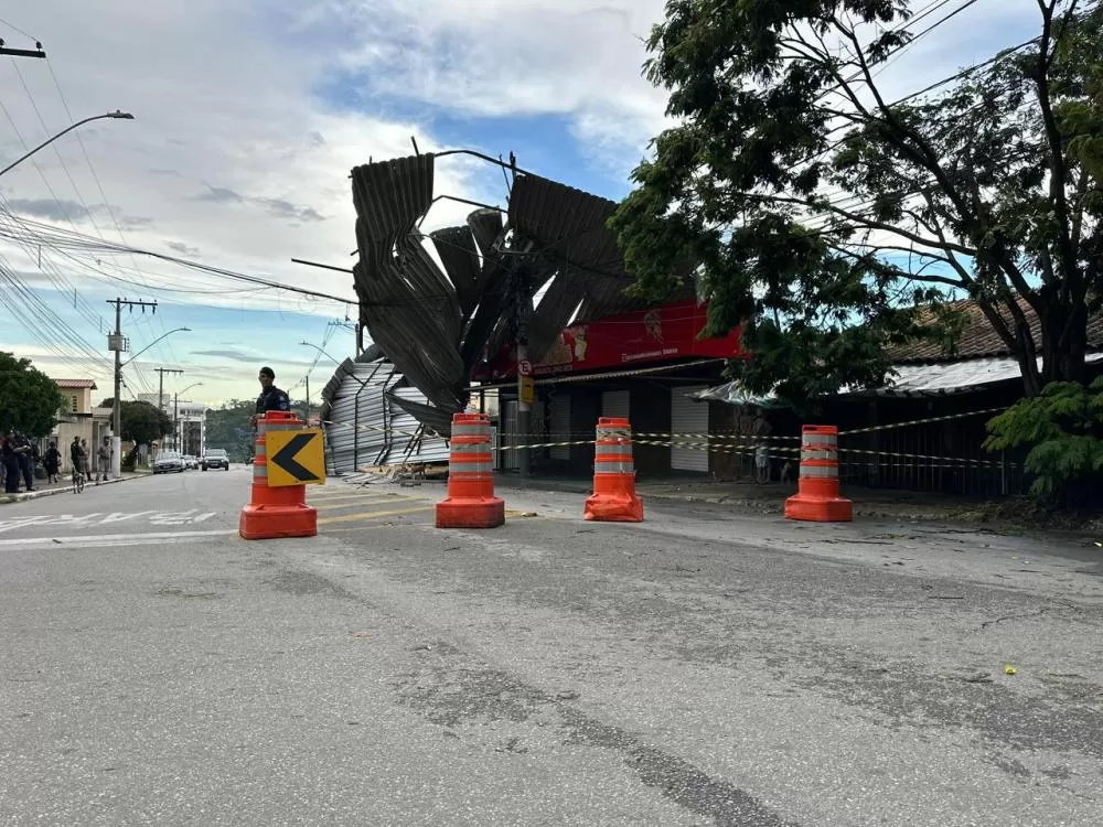 Um temporal arrancou o telhado de uma academia, na tarde desta quarta-feira (14), na Av. Dr. Ângelo Teixeira da Costa, no bairro Frimisa, em Santa Luzia.
