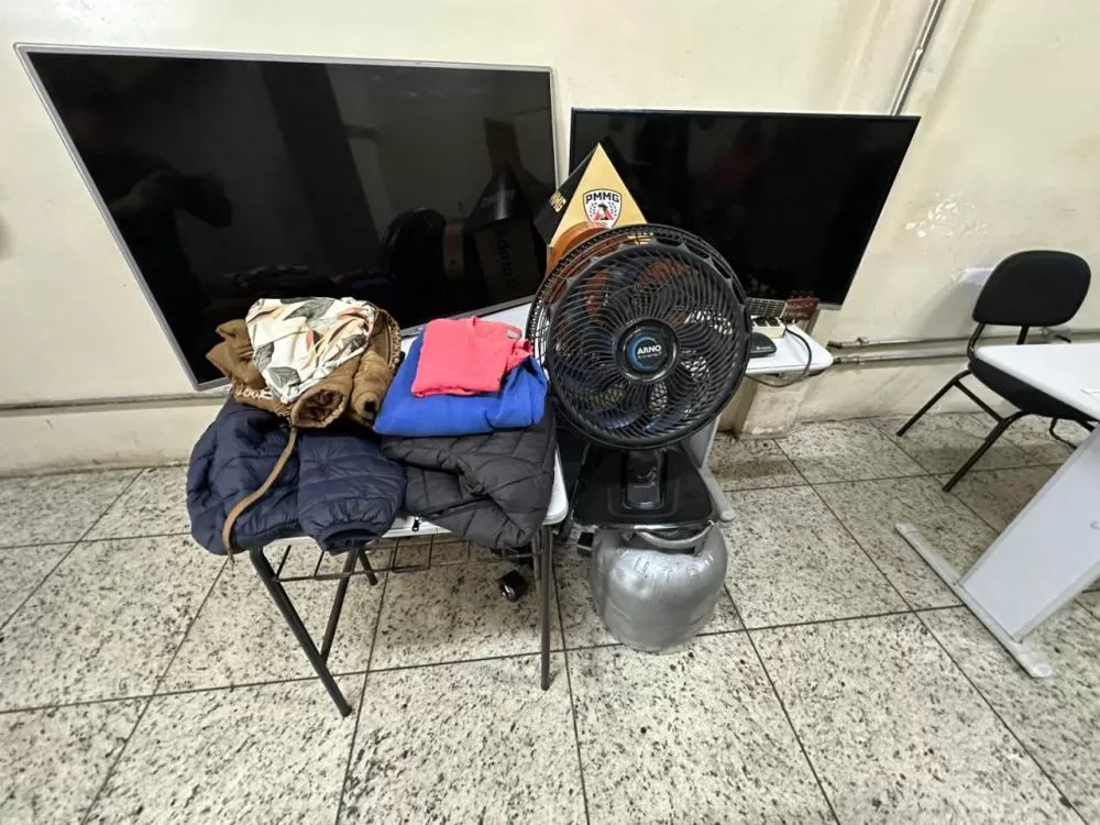 Entre os pertences recuperados, apenas uma televisão de 32 polegadas não foi localizada. Para PM, o trio afirmou que já havia vendido o aparelho.