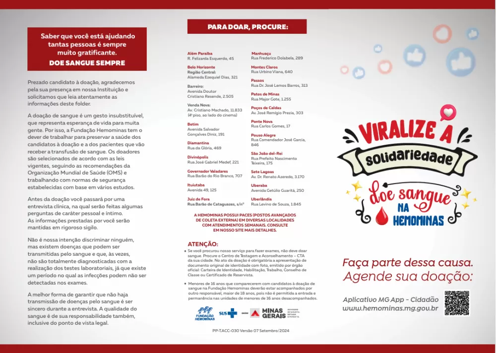 Os endereços e horários de funcionamento das unidades da Hemominas em Minas Gerais podem ser consultados no site oficial: