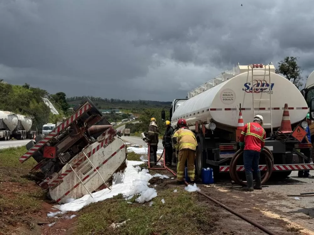 O Corpo de Bombeiros Militar de Minas Gerais foi acionado e enviou três viaturas com 12 militares para a ocorrência. As equipes atuaram na sinalização da via, no isolamento da área e na prevenção contra incêndios, devido ao risco elevado provocado pela carga transportada. Também foi realizada avaliação técnica para identificar possíveis focos de ignição e minimizar danos ambientais.