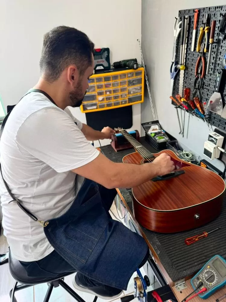Especialista em instrumentos de corda, Jonathan realiza manutenção em uma ampla variedade: guitarras, contrabaixos, violões, viola caipira, cavaquinho, bandolim, ukulele, entre outros. Sua versatilidade permite atender desde músicos iniciantes até profissionais exigentes, sempre com o mesmo nível de dedicação e precisão.
