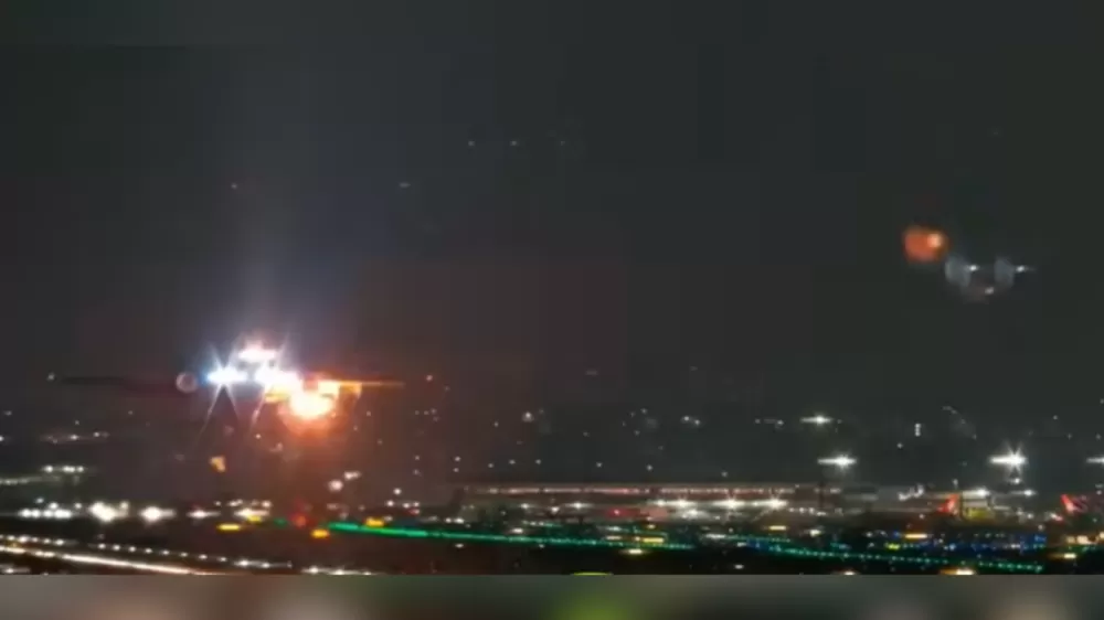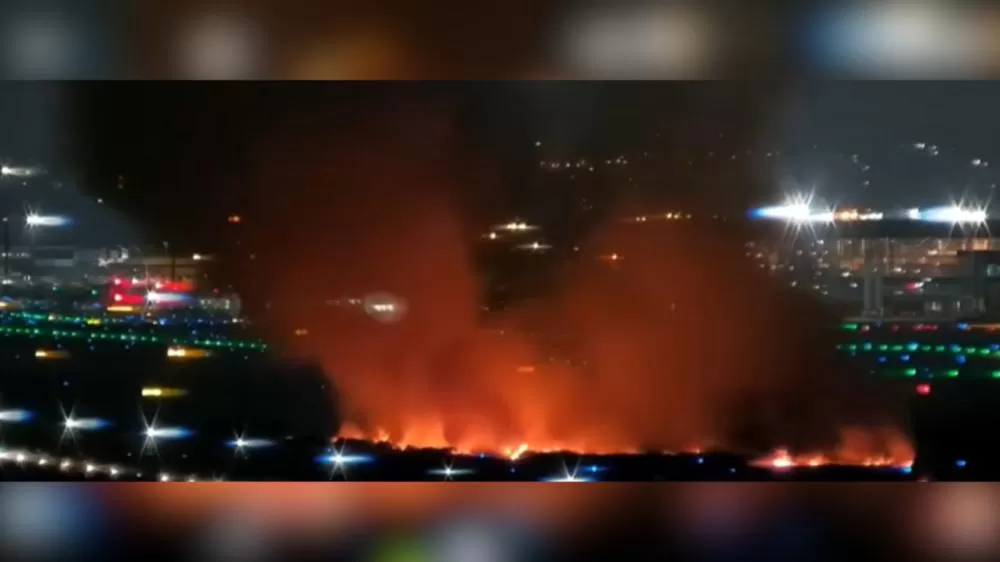 Imagens também indicam que fragmentos em chamas chegaram a cair na área próxima à pista, provocando um princípio de incêndio no gramado do aeroporto, rapidamente controlado pelas equipes de emergência.