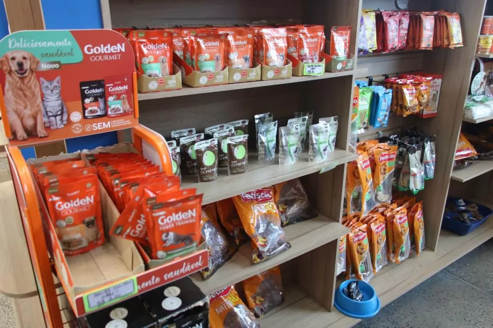 Outro ponto forte é a divisão por setores dentro da loja, facilitando a experiência de compra. Os tutores encontram com facilidade desde rações super premium até itens de higiene, roupinhas, medicamentos, caminhas e acessórios para gatos e cães de todos os portes.