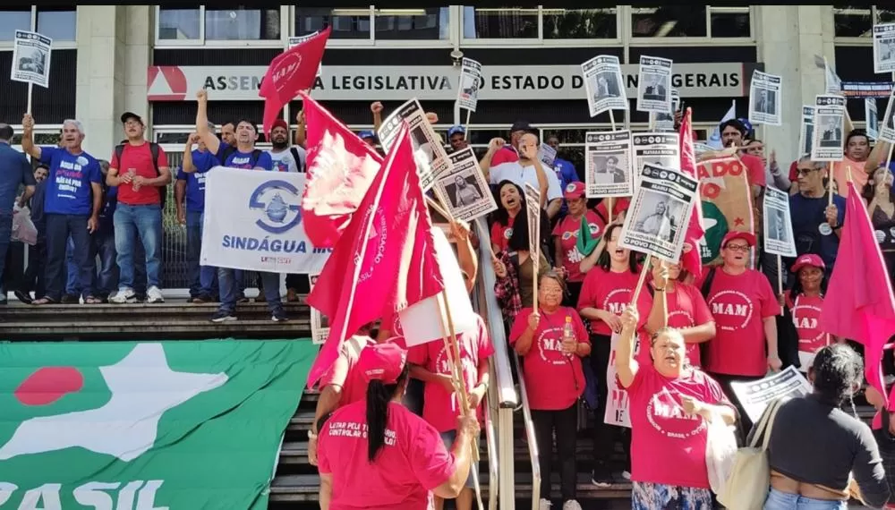 Manifestantes protestam contra privatização da Copasa em frente à Assembleia Legislativa de Minas Gerais
